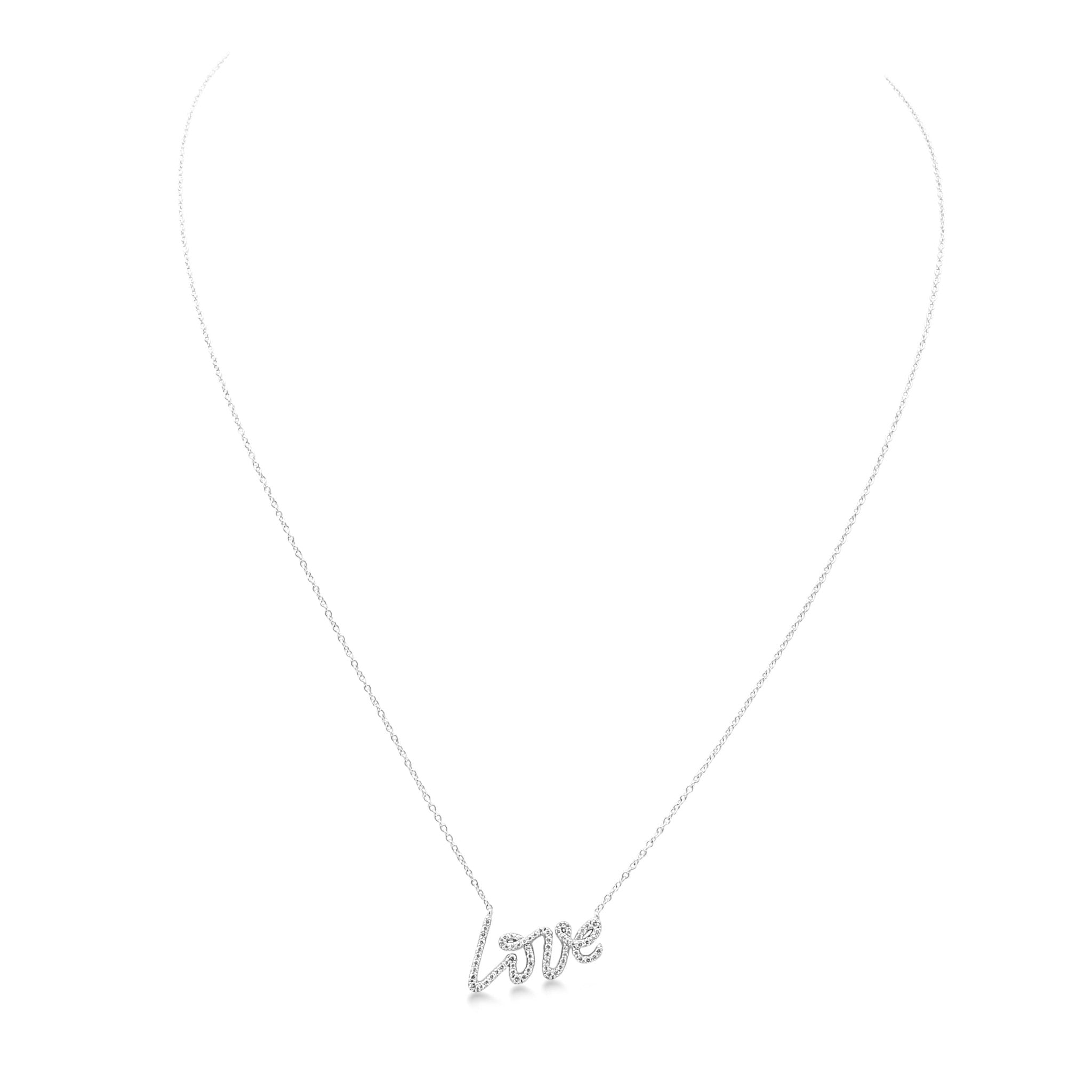 Introducing this stunning second hand Tiffany Palomas Graffiti Diamond Love Pendant Necklace, a true masterpiece from the renowned brand Tiffany & Co. This necklace is a part of the iconic Palomas Graffiti collection, inspired by the vibrant and spontaneous energy of street art. It is a symbol of love, showcasing the word "Love" in a bold and playful font, making it a perfect gift for a special someone or a treat for yourself.