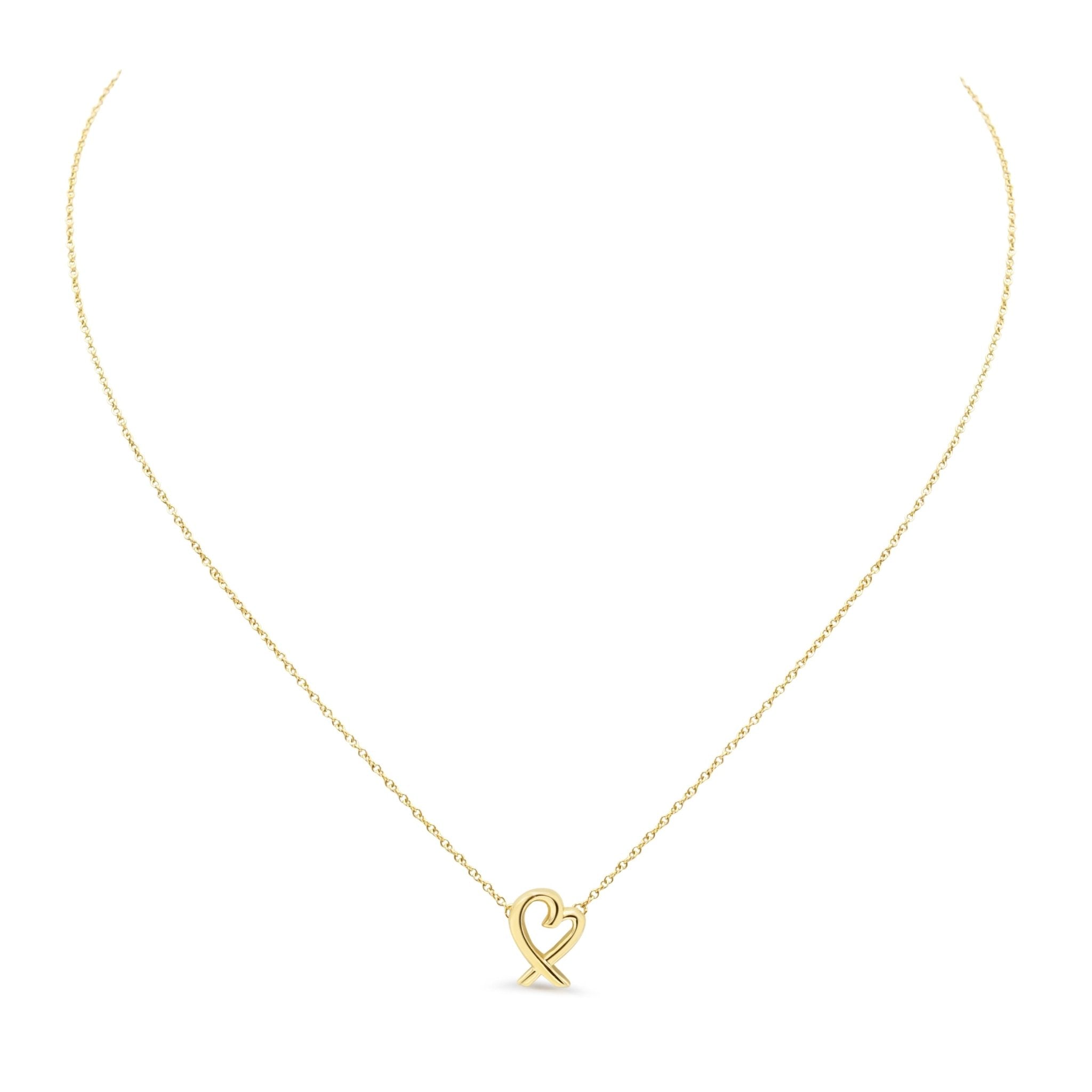 Elevate your style with this second hand Tiffany Paloma Picasso Loving Heart Pendant, Size Mini. This exquisite necklace is a part of the iconic Paloma Picasso collection by the esteemed brand, Tiffany & Co. Crafted with 18ct Yellow Gold, this pendant exudes opulence and luxury.