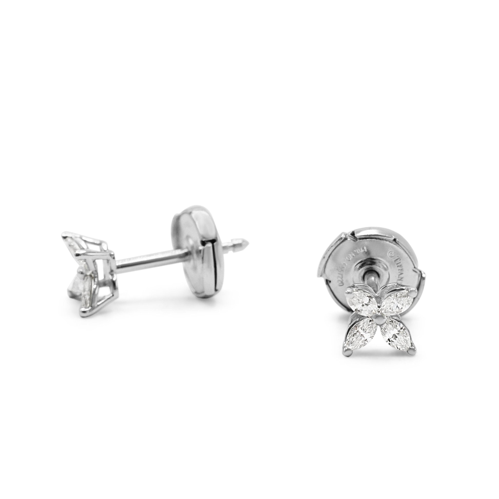 Introducing the epitome of luxury and elegance �� these second hand Tiffany Victoria Marquise Diamond Stud Earrings. These stunning earrings from the renowned Tiffany brand are a must-have for any woman looking to add a touch of glamour to her outfit.