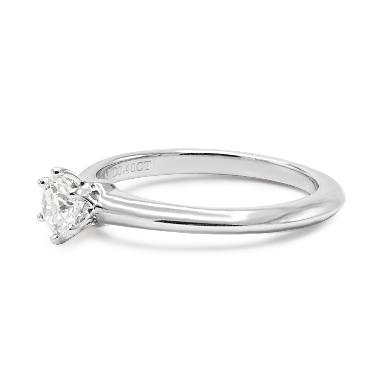 Ladies, we have a piece of perfection just for you - this second hand Tiffany & Co. Solitaire 0.40ct Diamond Ring. Let's start with the specs, shall we? This stunning ring is pre-owned, so it comes with a history and a story to tell. A charming combination of elegance and timelessness, the Tiffany & Co. brand has been synonymous with luxury and sophistication for over 180 years.