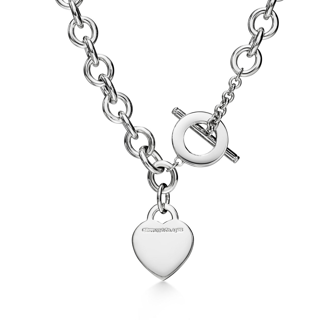 Inspired by a key ring we debuted in 1969, the return to tiffany® collection is famous for its signature motif. This sterling silver link necklace features an oversized toggle closure and our iconic heart tag set with a round brilliant diamond. It’s a standout when worn on its own and also combines beautifully with other long necklaces.