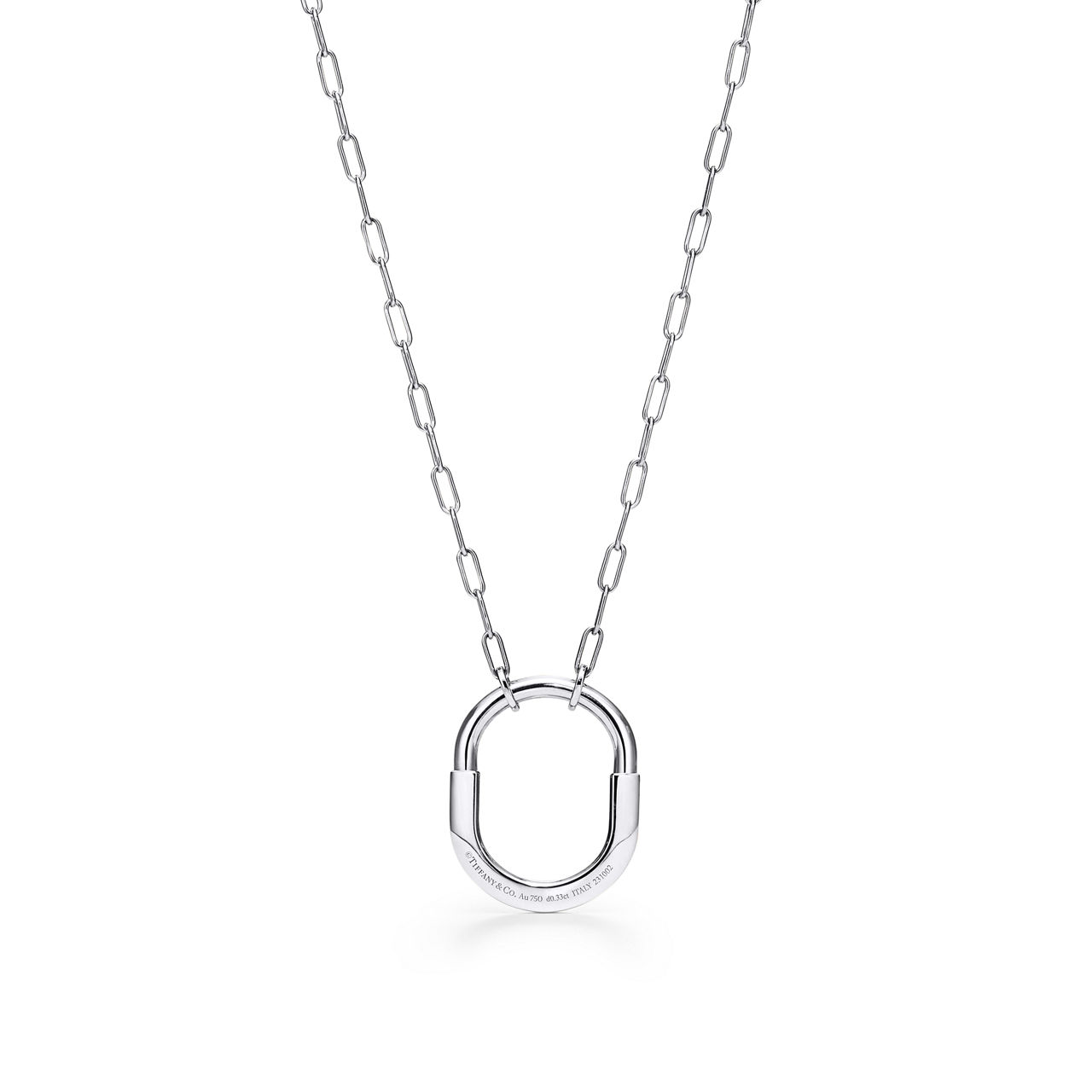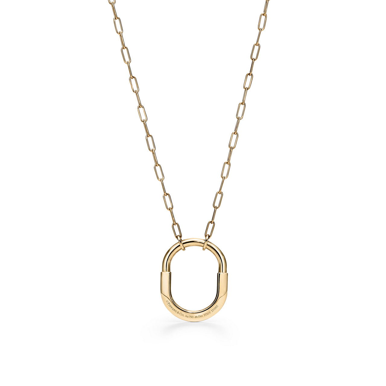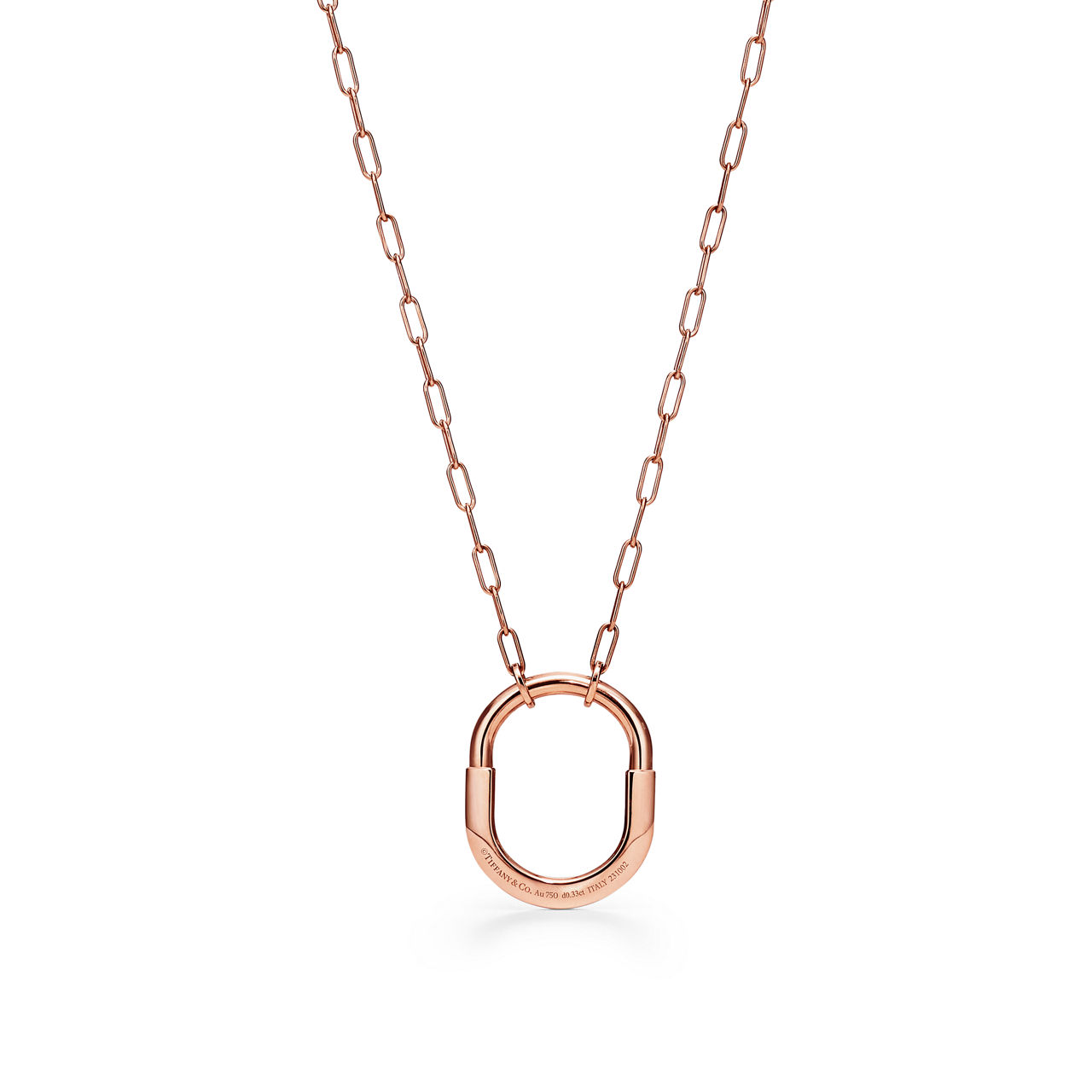 Tiffany lock is an expression of love’s enduring protection, inspired by a padlock from the tiffany archives that dates to 1883. Designed to keep safe that which is cherished, lock is a universal symbol of what matters most. This pendant features a striking oval link chain that echoes the lock motif. It’s expertly crafted in 18k rose gold with hand-set diamonds.