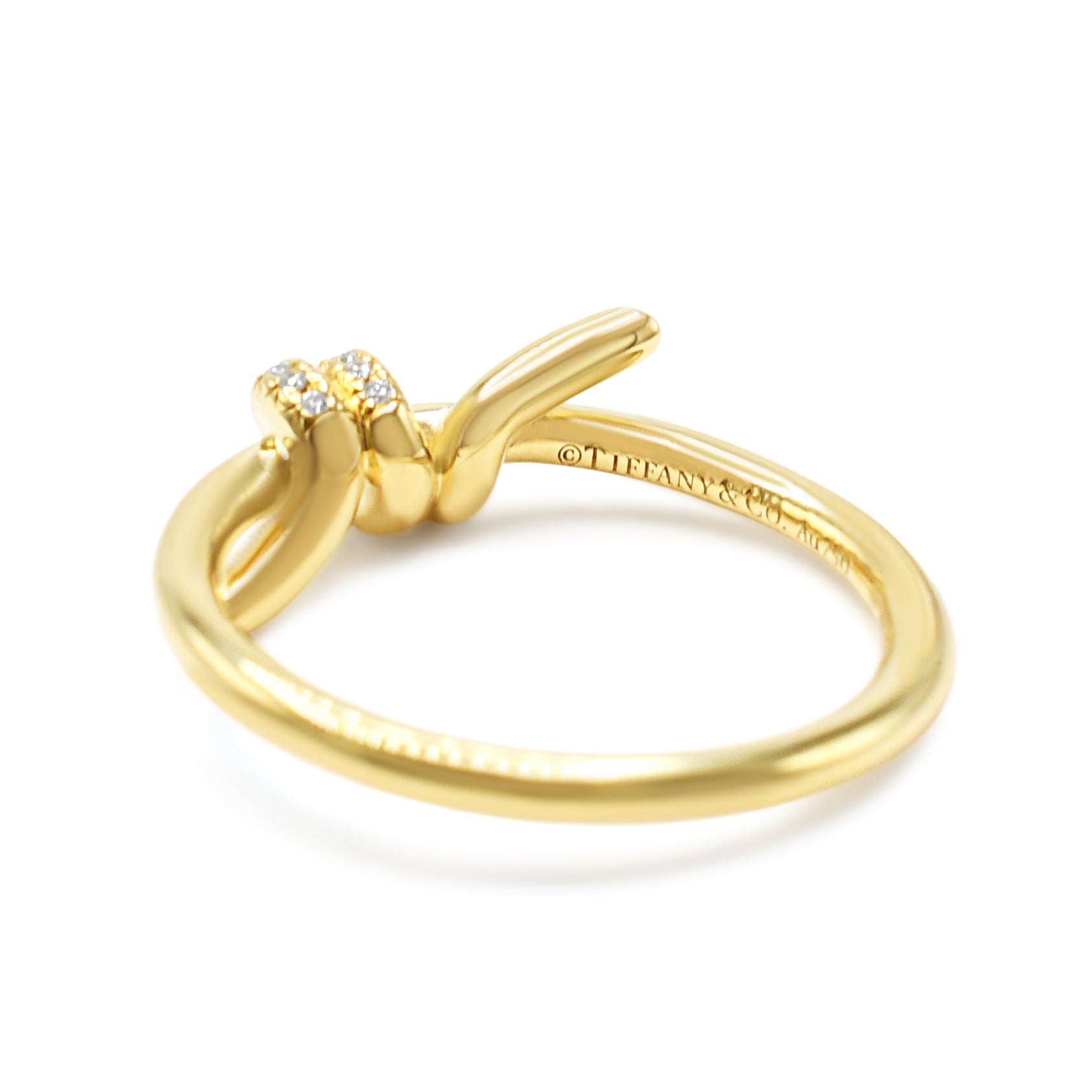 Unleash the true essence of elegance and luxury with this second hand Tiffany Diamond Knot Ring in 18ct Yellow Gold. A magnificent creation by the renowned brand Tiffany & Co, this ring exudes sophistication and grace, making it the perfect addition to any woman's jewellery collection.