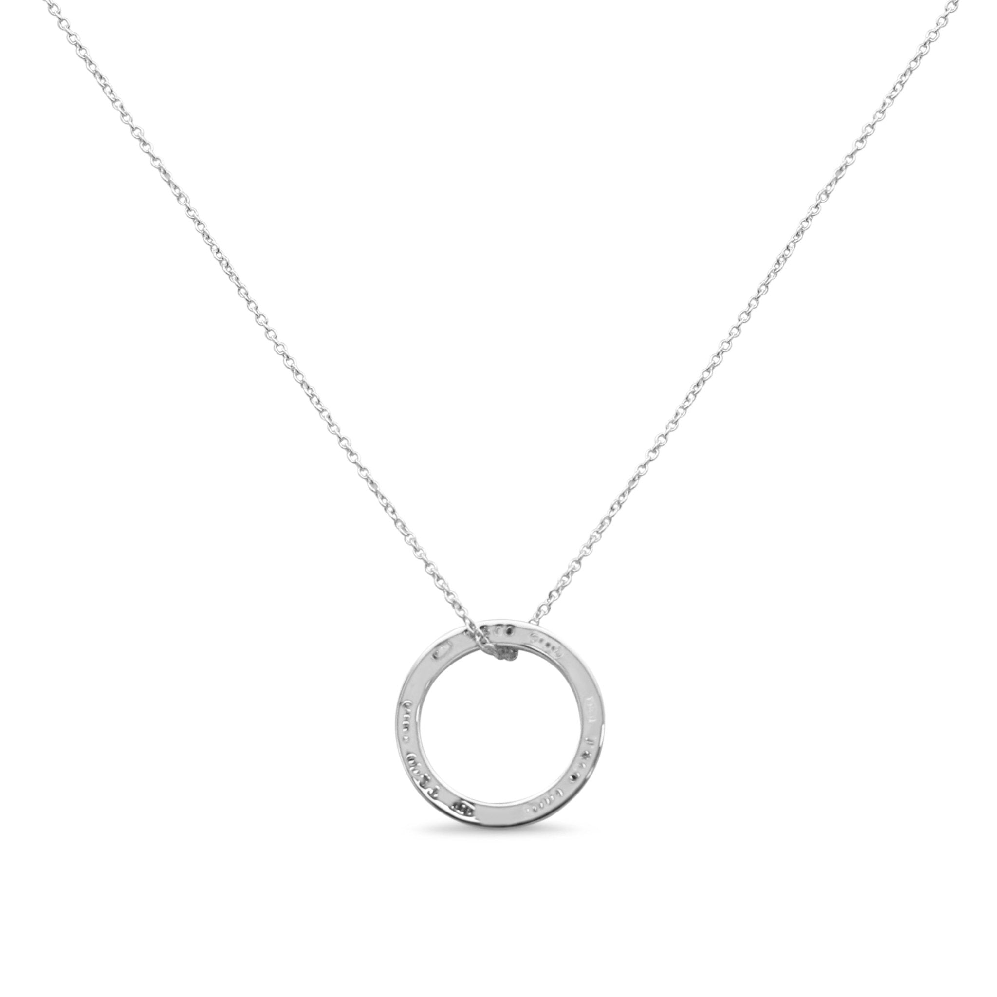 With its profound symbolism, impeccable quality, and undeniable allure, this pre-loved Tiffany 1837 Circle Medium Pendant On Necklace - Sterling Silver, is an investment in both style and sentiment. Get ready to make a statement and captivate the hearts and minds of those around you with this remarkable piece from the Tiffany & Co. jewellery collection. Elevate your personal style and let your individuality shine with this exceptional pendant necklace that embodies the true essence of luxurious elegance and eternal beauty.